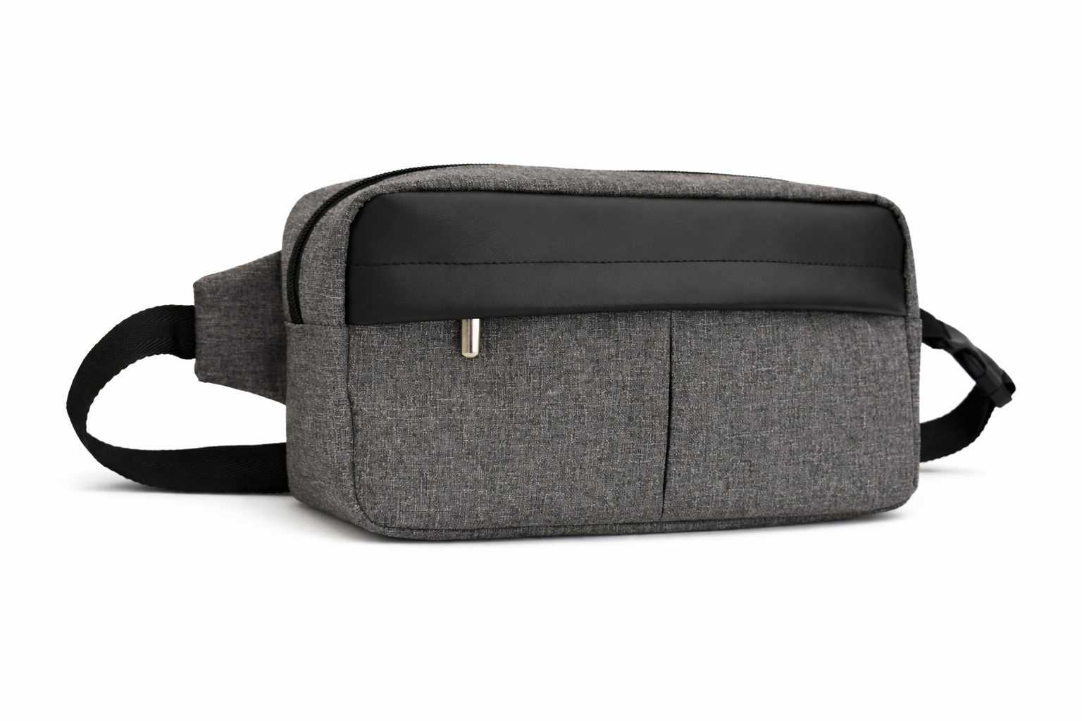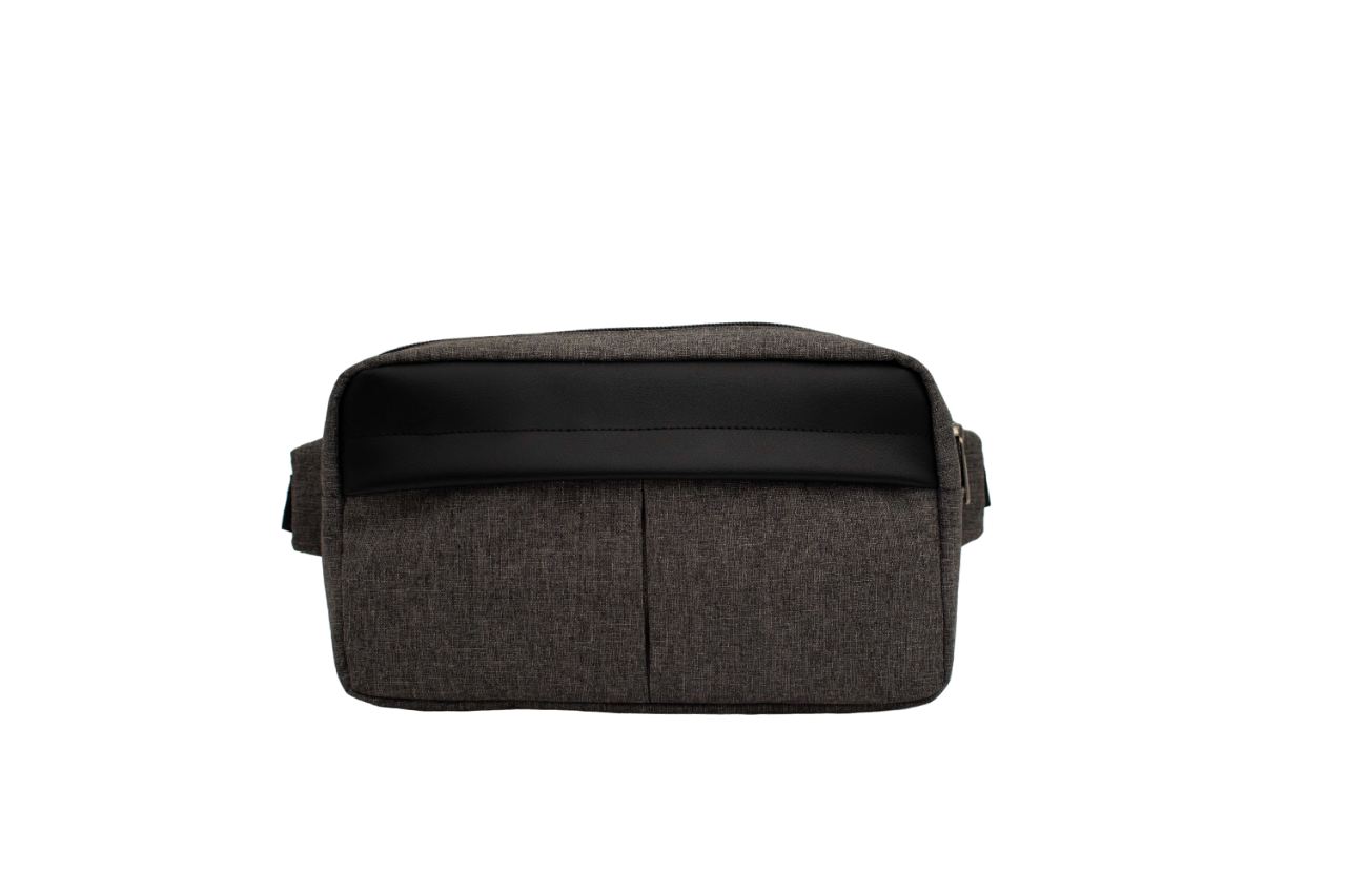 Canguro con 2 compartimientos con apliques en cuero sintético.